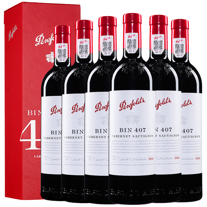 TJL Penfolds 澳洲进口红酒 奔富BIN407赤霞珠干红葡萄酒 14.5%VOL 750m*6支装