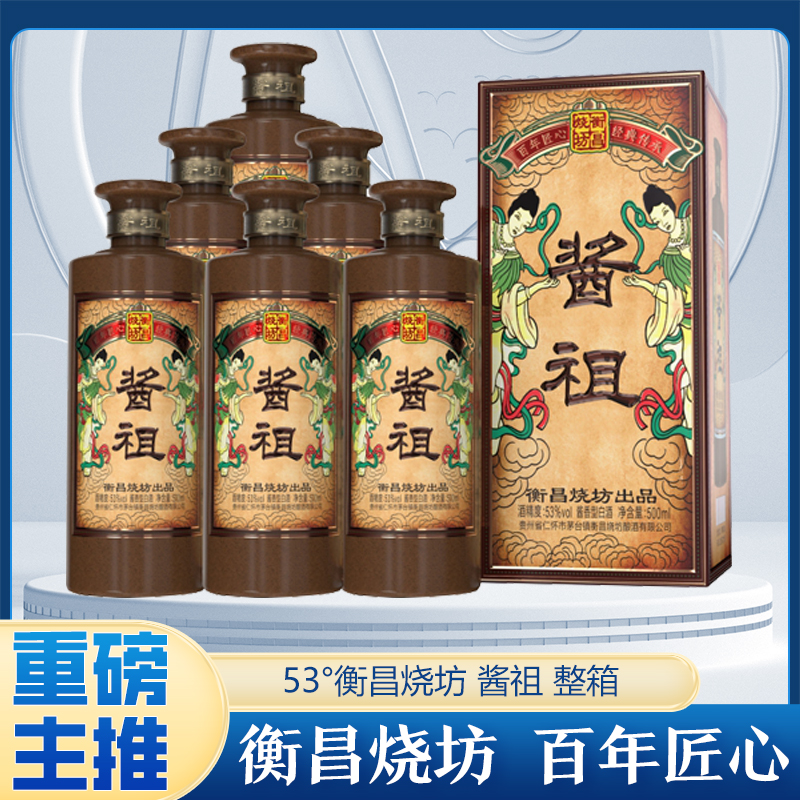 衡昌烧坊 酱香型白酒 送礼婚庆礼盒酒水 53度 酱祖500ml*6瓶 整箱装