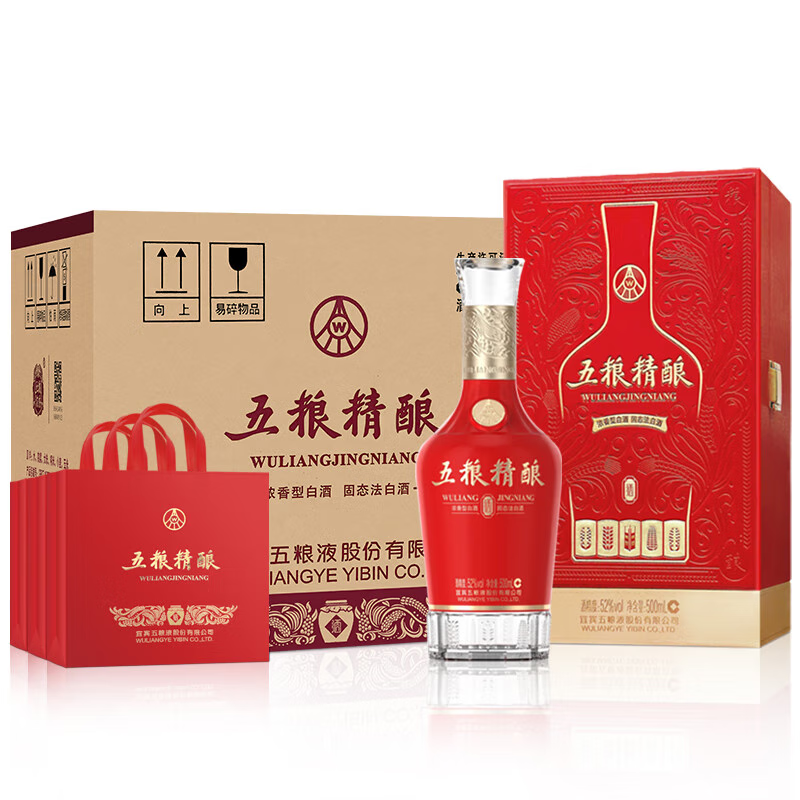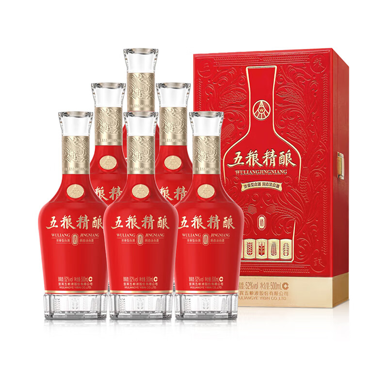宜宾五粮液股份有限公司出品 五粮精酿 盛酿 52度 浓香型白酒 纯粮酿造 500ml*6瓶 整箱
