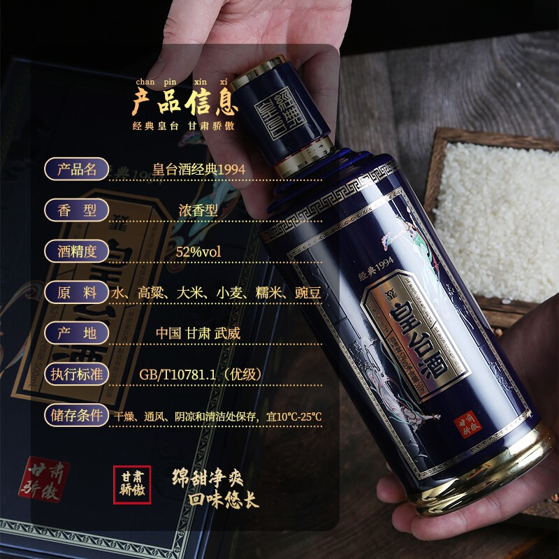 皇台经典1994 52度 浓香型白酒 聚会自饮口粮酒 500ml*4瓶 整箱