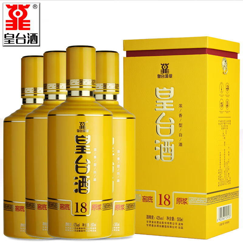 皇台窖底原浆18 52度 浓香型白酒 聚会自饮口粮酒 500ml*4瓶 整箱