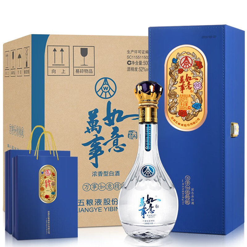 五粮液股份出品 万事如意精致 52度 浓香型白酒 纯粮固态发酵 500ml*4瓶 整箱