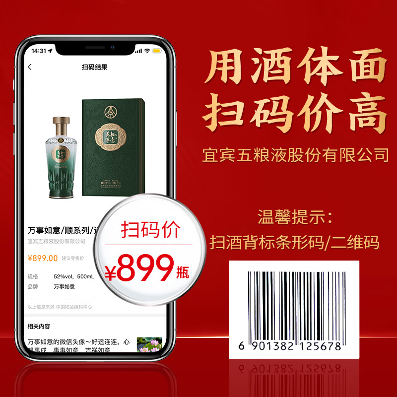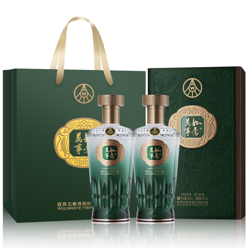 五粮液股份出品 万事如意运顺 52度 浓香型白酒 纯粮固态发酵 500ml*2瓶 双瓶