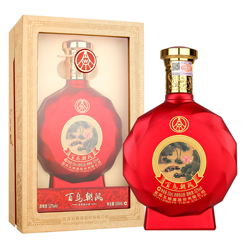 五粮液股份出品 百鸟朝凤 佳酿 52度 浓香型白酒 聚会送礼宴请 500ml*2瓶