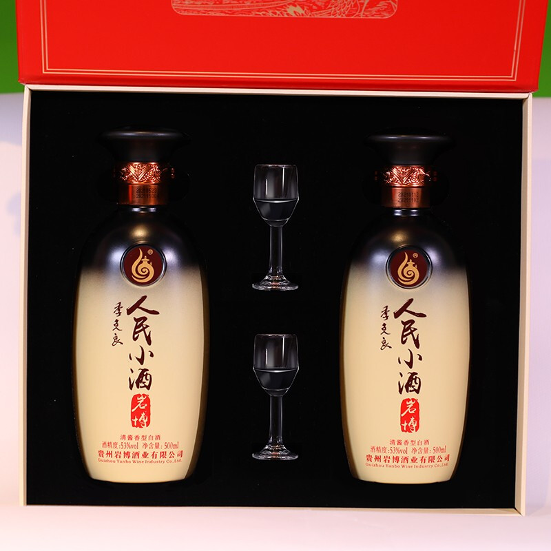 人民小酒 经典礼盒 53度 清酱香型白酒 纯粮酿造 送礼佳品 500ml*2瓶*3盒 整箱