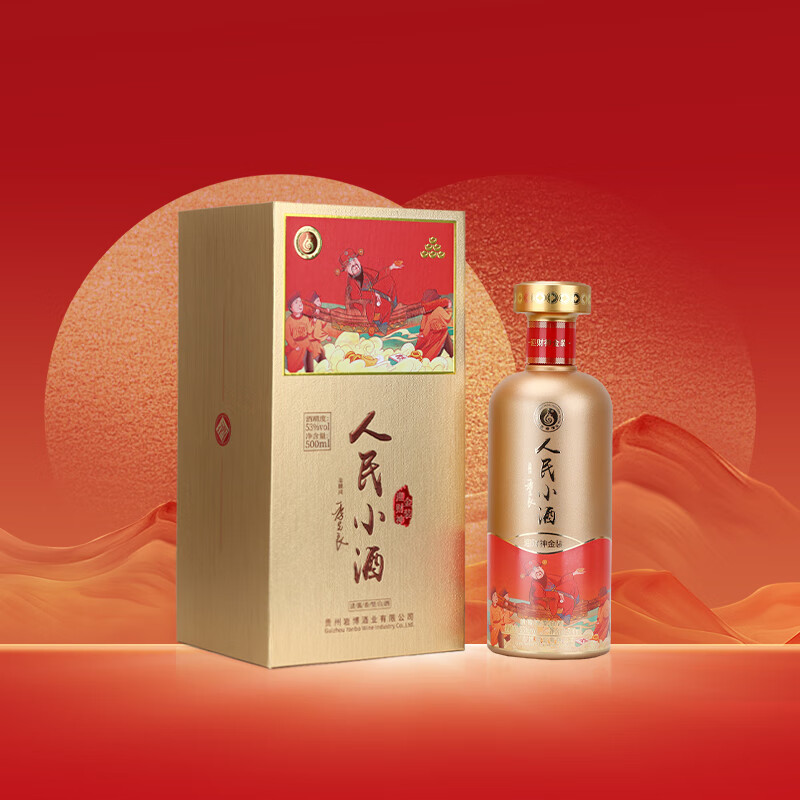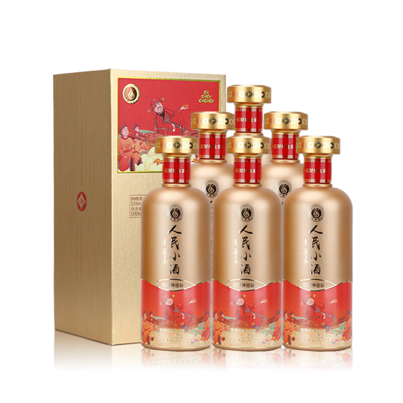 人民小酒 金装迎财神 53度 清酱型白酒 纯粮酿造 聚会宴请自饮 500ml*6瓶 整箱