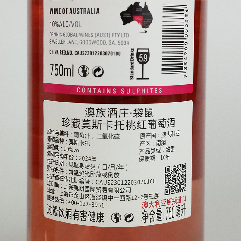 商品名称:澳族酒庄袋鼠珍藏莫斯卡托桃红