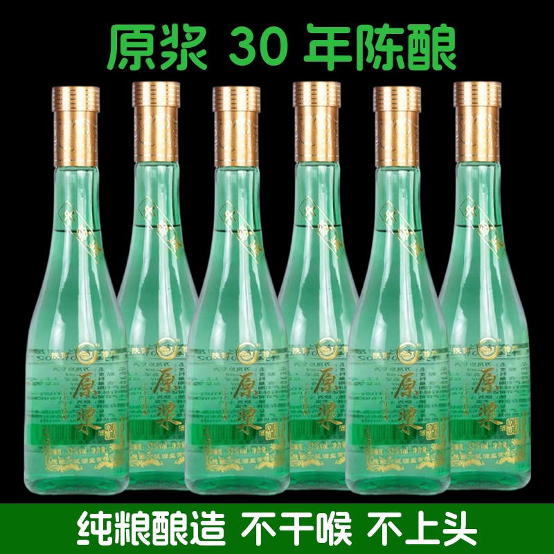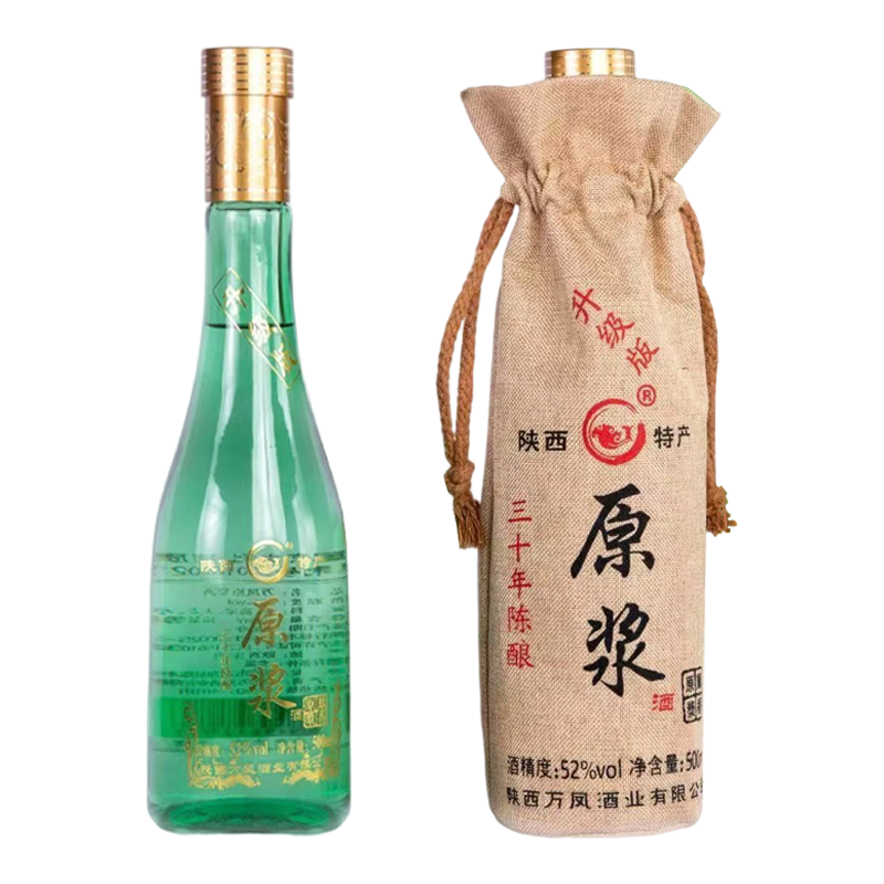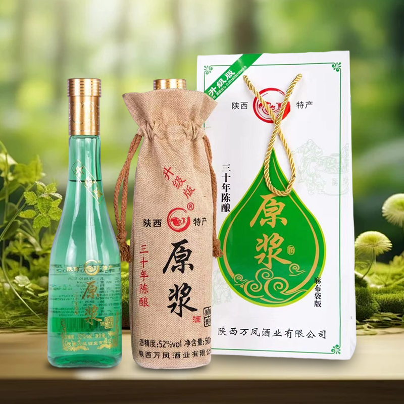 陕西 万凤 原浆30年(绿瓶布袋)30年陈酿粮食酒 凤香型白酒 52度 500ml*6 整箱