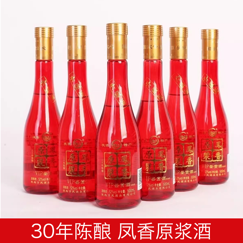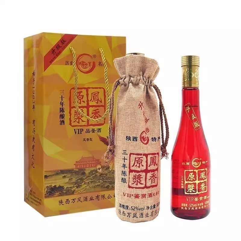 陕西 万凤 原浆30年(红瓶布袋)30年陈酿粮食酒 凤香型白酒 52度 500ml*6 整箱