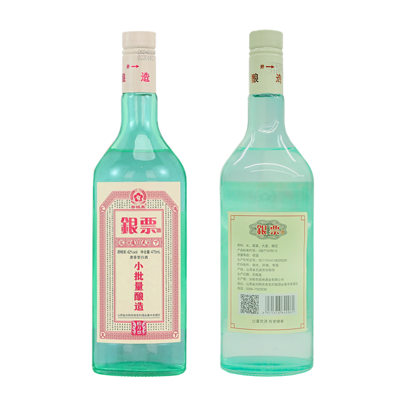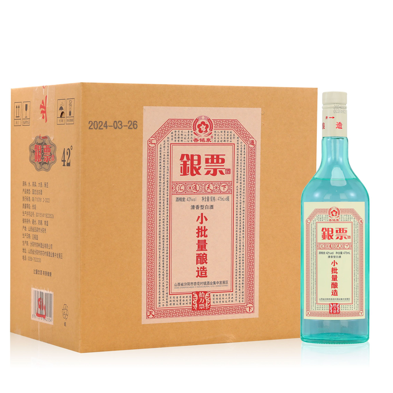 山西杏花村 杏铭泉 银票 清香型白酒 42度 475ml*6瓶 整箱