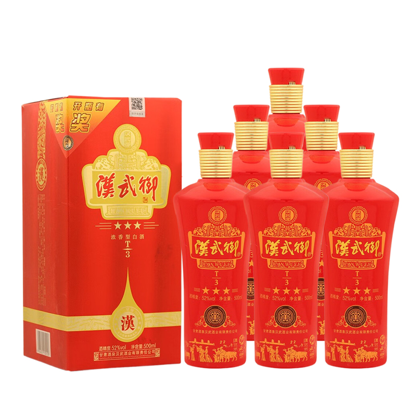 甘肃酒泉 汉武御三星 浓香型白酒 52度 500mL*6瓶 整箱装