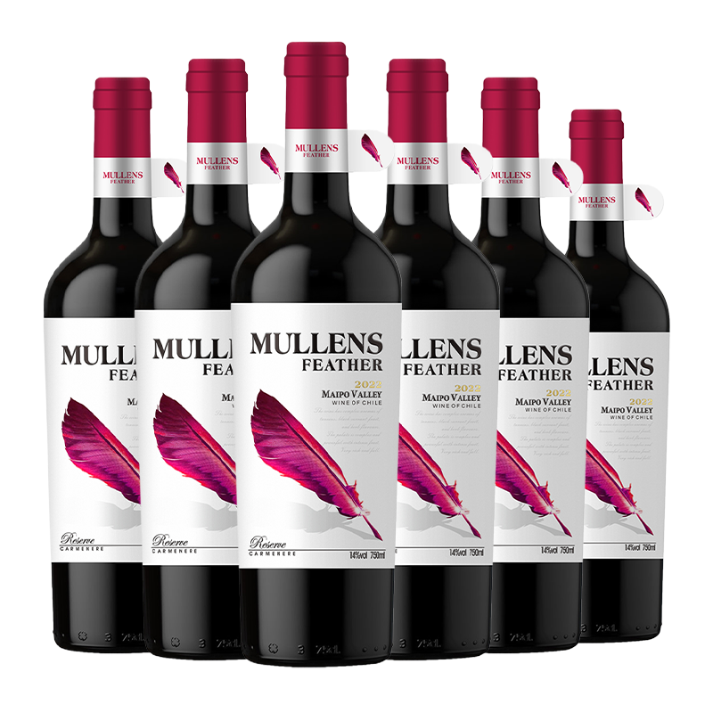 莫朗酒庄 红羽毛干红 礼盒装 智利进口 14%VOL 750ml*6瓶 整箱装