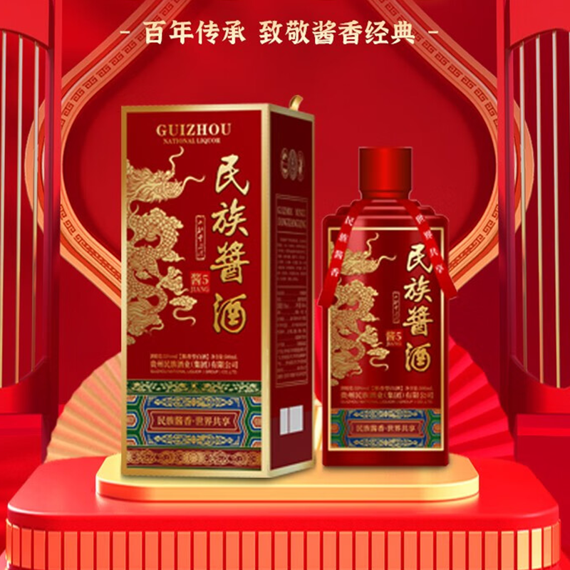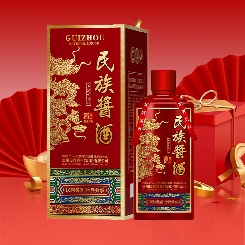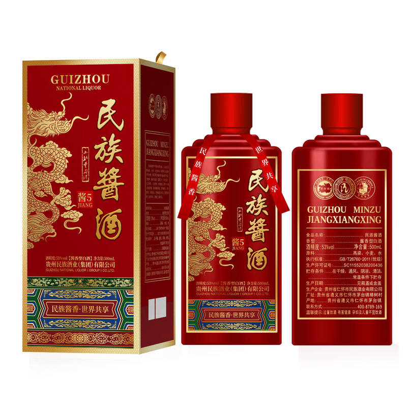 民族酱酒 酱5 酱香型白酒 53度 粮食高度白酒500ml**6瓶 整箱装