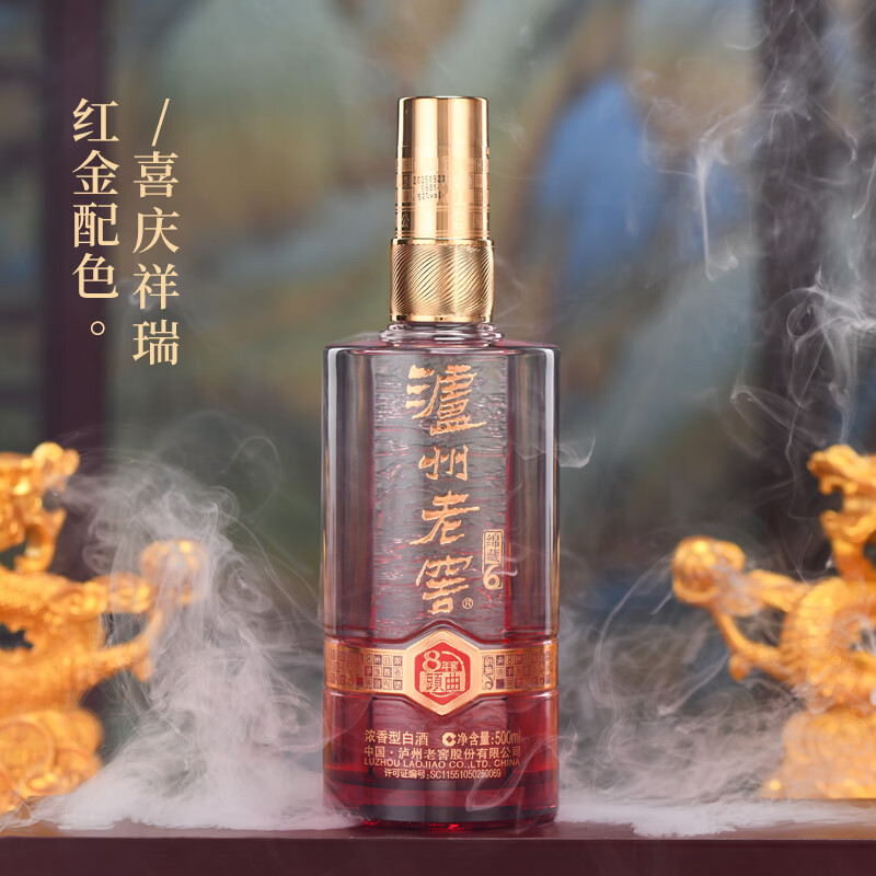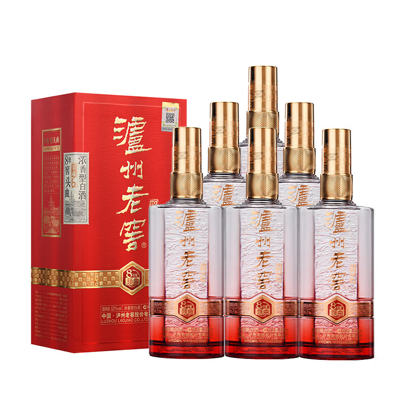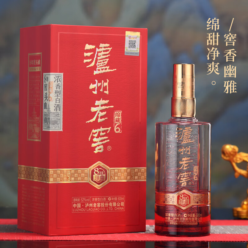 泸州老窖8年窖头曲 绵藏6 52度 浓香型 纯粮食白酒 送礼 婚宴 500mL*6瓶 整箱装